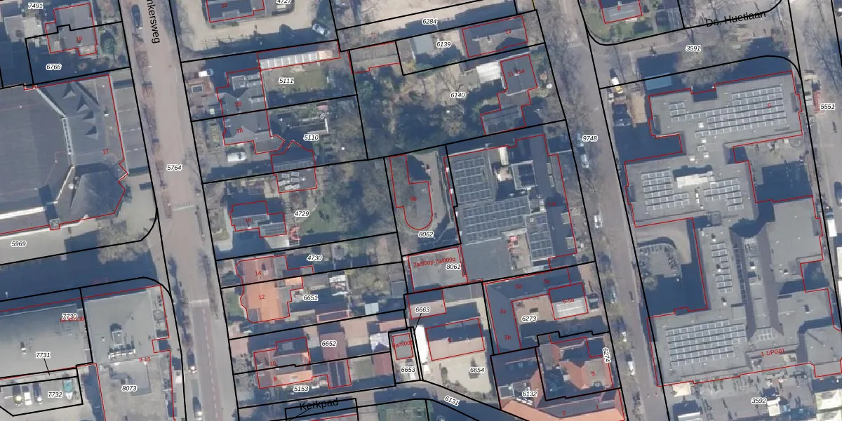 Gebruik de zoekbalk of klik op een perceel voor informatie over de adressen binnen dit perceel.