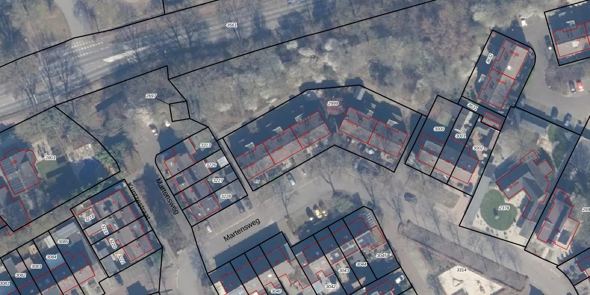 Martensweg 19 is gelegen op kadastraal perceel NST01I2999. Deze kadastrale aanduiding is uniek en wordt gebruikt door het Kadaster om eigendomsrechten en andere zakelijke rechten vast te leggen. Het perceel maakt onderdeel uit van de kadastrale gemeente Nunspeet.