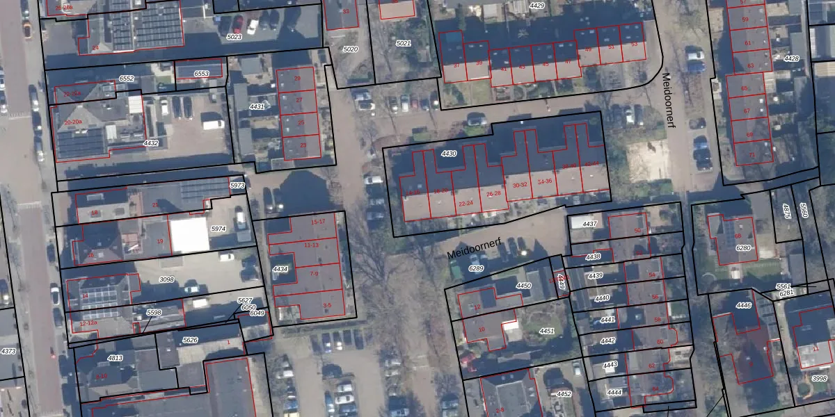 Meidoornerf 16 is gelegen op kadastraal perceel NST01A4430. Deze kadastrale aanduiding is uniek en wordt gebruikt door het Kadaster om eigendomsrechten en andere zakelijke rechten vast te leggen. Het perceel maakt onderdeel uit van de kadastrale gemeente Nunspeet.