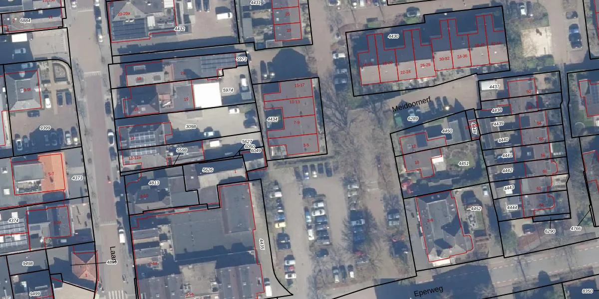 Het perceel waarop Meidoornerf 3 staat heeft een oppervlakte van 553 m². Dit is een groot perceel. De perceeloppervlakte wordt geregistreerd door het Kadaster. Gedetailleerde informatie over de maten van dit perceel kunt u vinden in het rapport Kadastrale kaart met maatvoering van Meidoornerf 3.