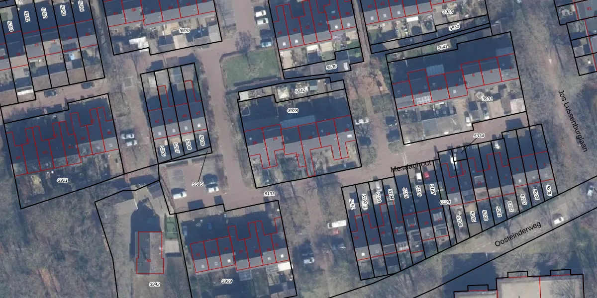 Het perceel waarop Mesdaghout 22 staat heeft een oppervlakte van 1012 m². Dit is een zeer groot perceel. De perceeloppervlakte wordt geregistreerd door het Kadaster. Gedetailleerde informatie over de maten van dit perceel kunt u vinden in het rapport Kadastrale kaart met maatvoering van Mesdaghout 22.