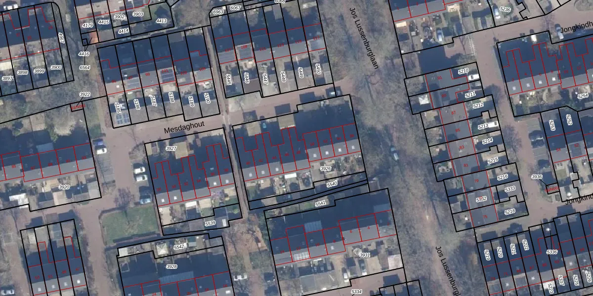 Het perceel waarop Mesdaghout 48 staat heeft een oppervlakte van 1066 m². Dit is een zeer groot perceel. De perceeloppervlakte wordt geregistreerd door het Kadaster. Gedetailleerde informatie over de maten van dit perceel kunt u vinden in het rapport Kadastrale kaart met maatvoering van Mesdaghout 48.