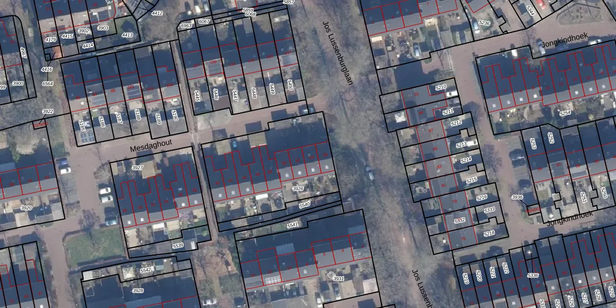 Het perceel waarop Mesdaghout 54 staat heeft een oppervlakte van 1066 m². Dit is een zeer groot perceel. De perceeloppervlakte wordt geregistreerd door het Kadaster. Gedetailleerde informatie over de maten van dit perceel kunt u vinden in het rapport Kadastrale kaart met maatvoering van Mesdaghout 54.
