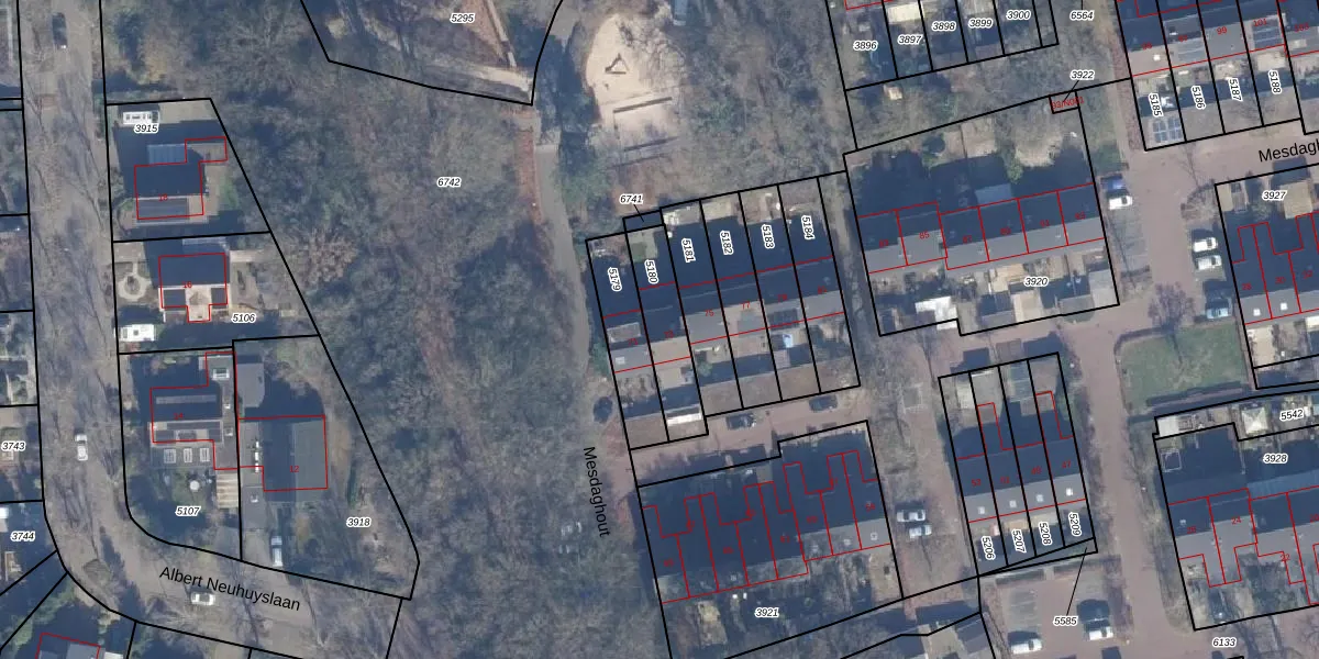 Het perceel waarop Mesdaghout 73 staat heeft een oppervlakte van 195 m². Dit is een middelgroot perceel. De perceeloppervlakte wordt geregistreerd door het Kadaster. Gedetailleerde informatie over de maten van dit perceel kunt u vinden in het rapport Kadastrale kaart met maatvoering van Mesdaghout 73.