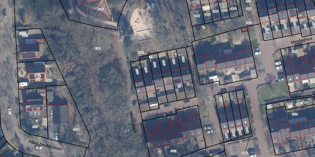 Gebruik de zoekbalk of klik op een perceel voor informatie over de adressen binnen dit perceel.