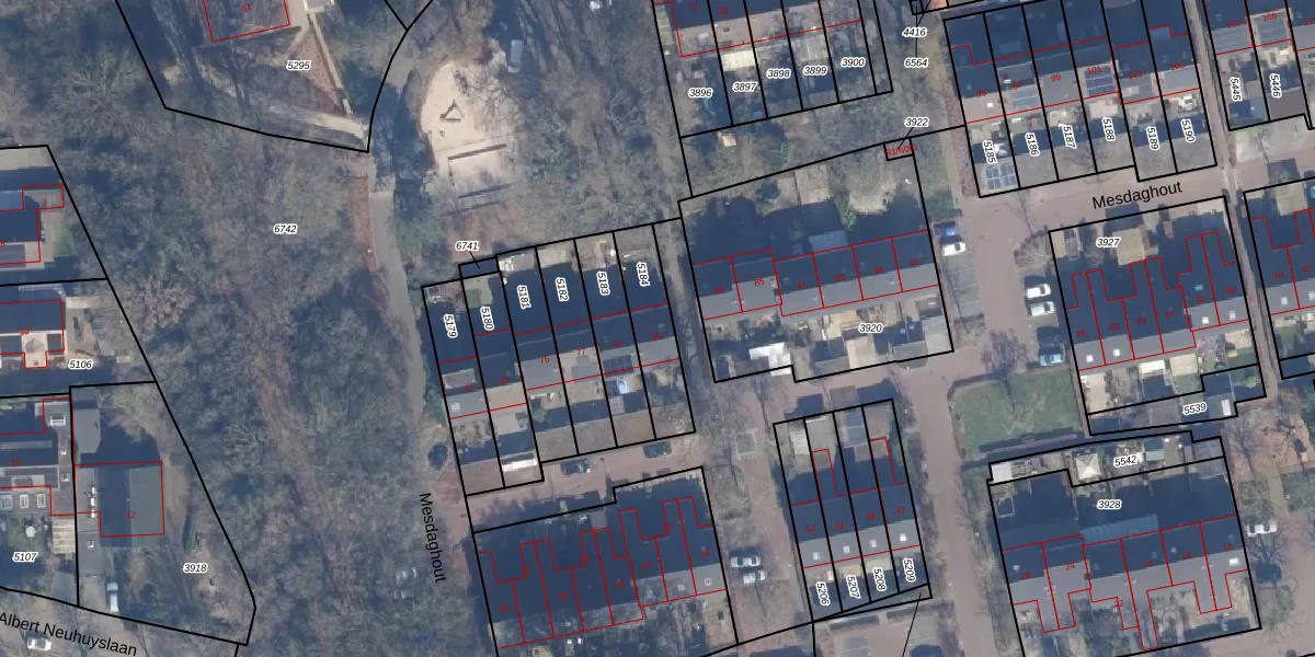 Het perceel waarop Mesdaghout 81 staat heeft een oppervlakte van 200 m². Dit is een middelgroot perceel. De perceeloppervlakte wordt geregistreerd door het Kadaster. Gedetailleerde informatie over de maten van dit perceel kunt u vinden in het rapport Kadastrale kaart met maatvoering van Mesdaghout 81.
