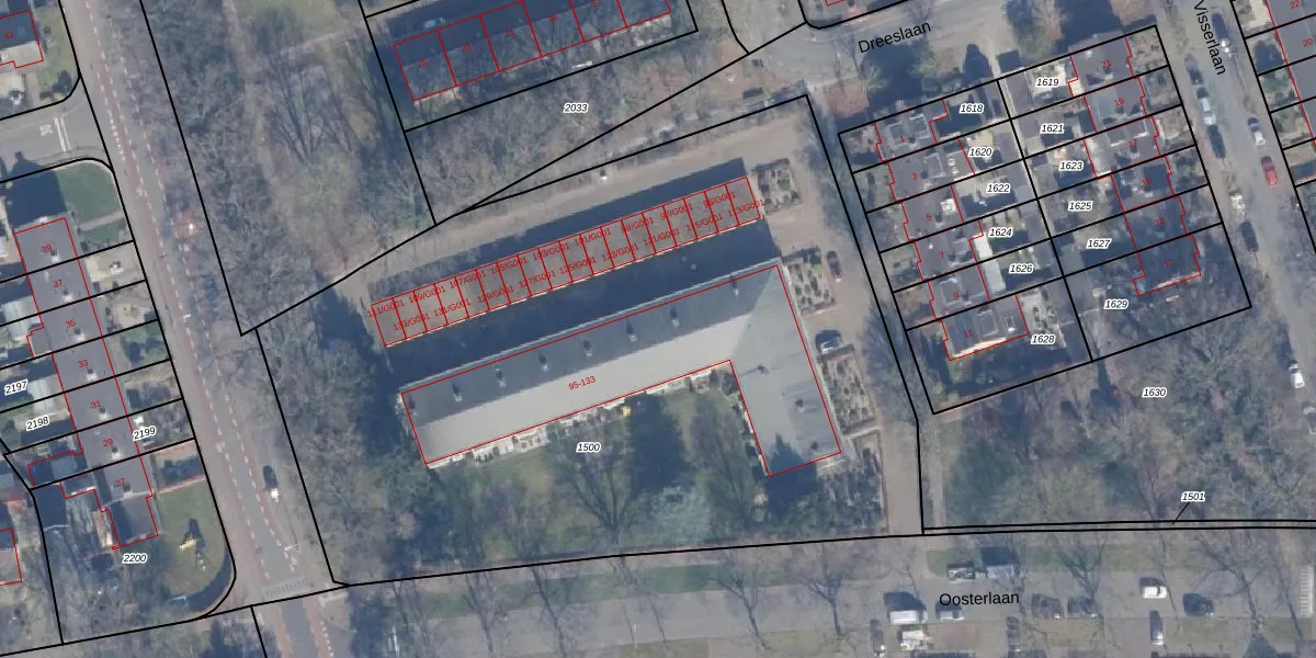 Het perceel waarop Oosterlaan 101 staat heeft een oppervlakte van 5131 m². Dit is een zeer groot perceel. De perceeloppervlakte wordt geregistreerd door het Kadaster. Gedetailleerde informatie over de maten van dit perceel kunt u vinden in het rapport Kadastrale kaart met maatvoering van Oosterlaan 101.