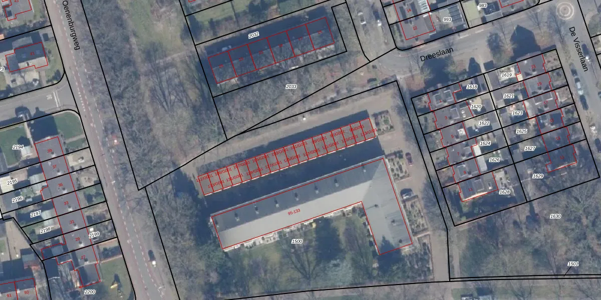Het perceel waarop Oosterlaan 101-G001 staat heeft een oppervlakte van 5131 m². Dit is een zeer groot perceel. De perceeloppervlakte wordt geregistreerd door het Kadaster. Gedetailleerde informatie over de maten van dit perceel kunt u vinden in het rapport Kadastrale kaart met maatvoering van Oosterlaan 101-G001.