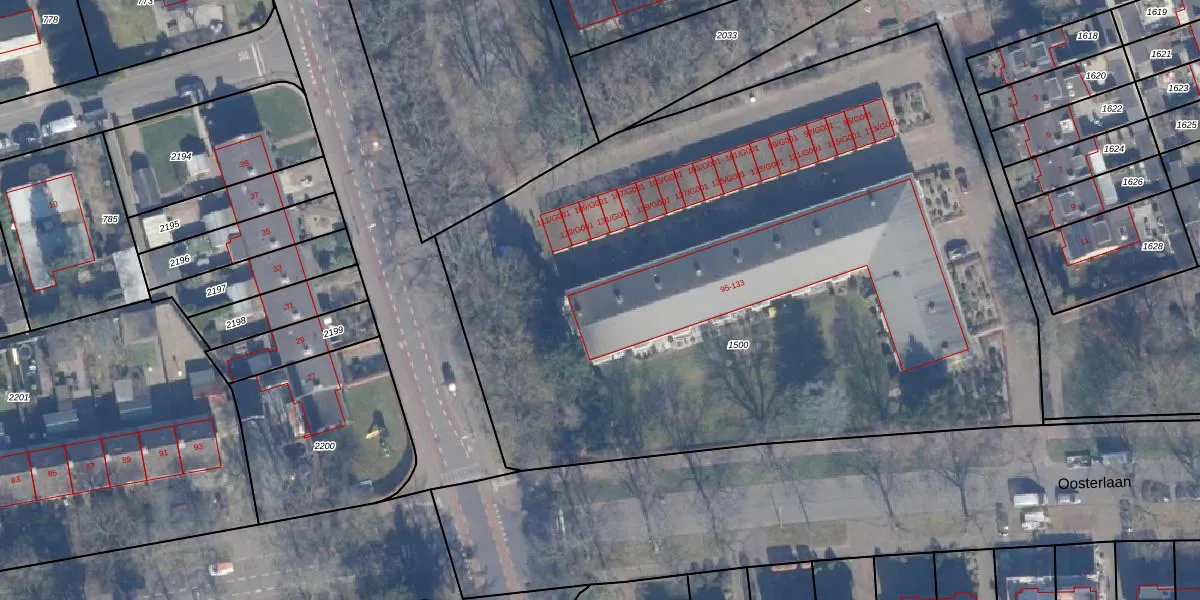 Het perceel waarop Oosterlaan 111 staat heeft een oppervlakte van 5131 m². Dit is een zeer groot perceel. De perceeloppervlakte wordt geregistreerd door het Kadaster. Gedetailleerde informatie over de maten van dit perceel kunt u vinden in het rapport Kadastrale kaart met maatvoering van Oosterlaan 111.