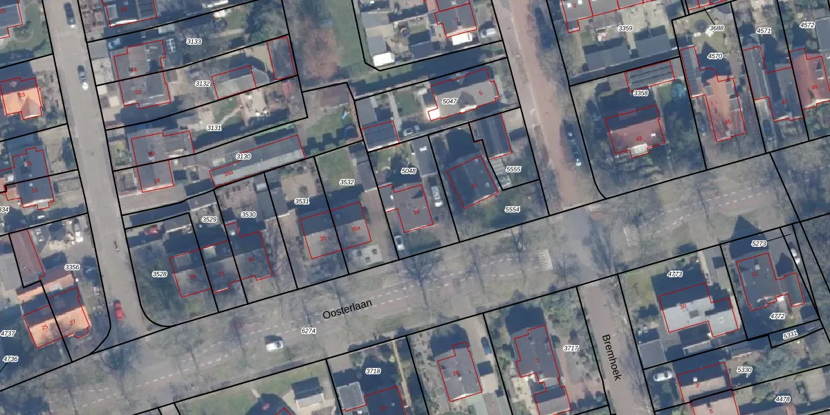 Het perceel waarop Oosterlaan 39 staat heeft een oppervlakte van 411 m². Dit is een groot perceel. De perceeloppervlakte wordt geregistreerd door het Kadaster. Gedetailleerde informatie over de maten van dit perceel kunt u vinden in het rapport Kadastrale kaart met maatvoering van Oosterlaan 39.