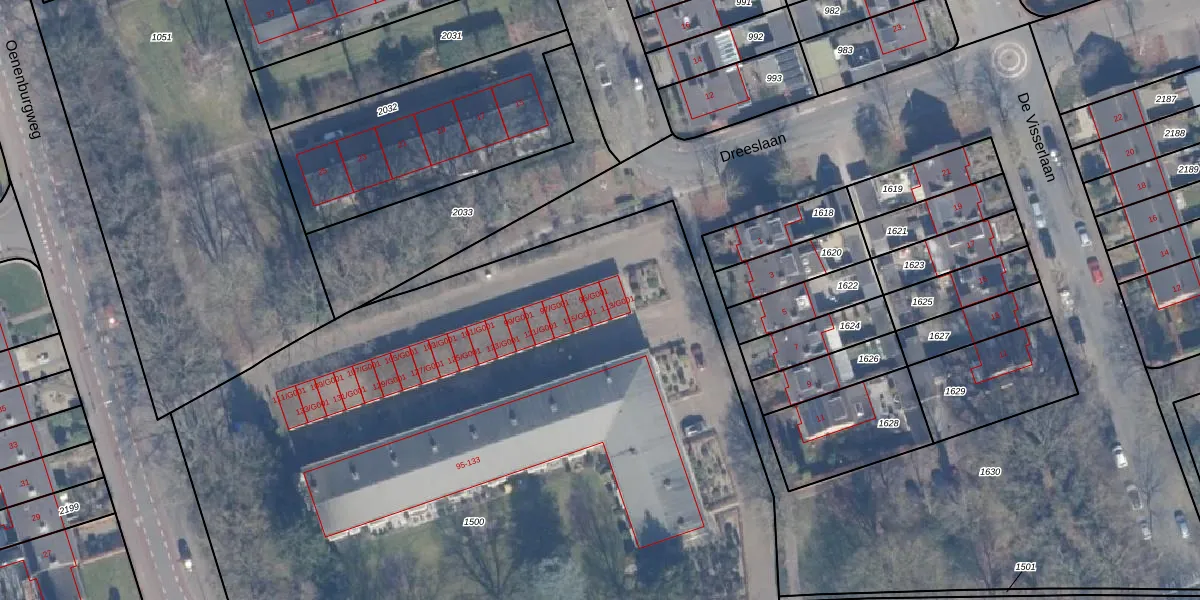 Het perceel waarop Oosterlaan 95-G001 staat heeft een oppervlakte van 5131 m². Dit is een zeer groot perceel. De perceeloppervlakte wordt geregistreerd door het Kadaster. Gedetailleerde informatie over de maten van dit perceel kunt u vinden in het rapport Kadastrale kaart met maatvoering van Oosterlaan 95-G001.