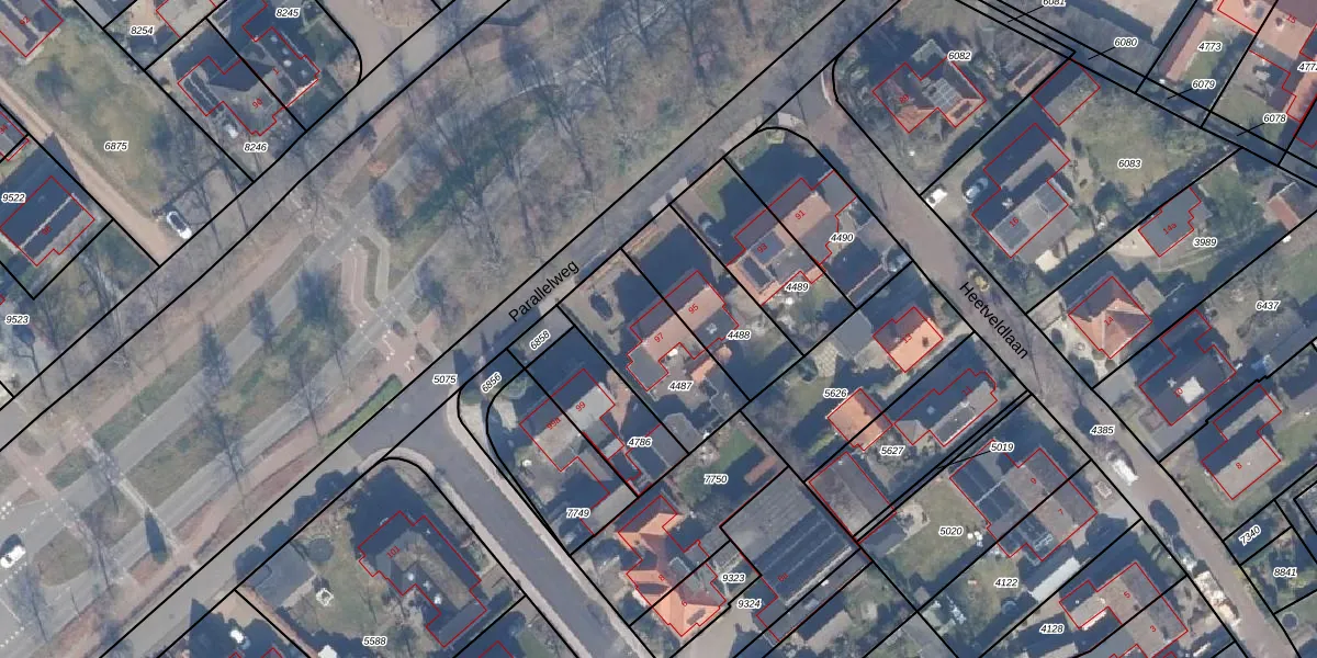 Het perceel waarop Parallelweg 97 staat heeft een oppervlakte van 364 m². Dit is een groot perceel. De perceeloppervlakte wordt geregistreerd door het Kadaster. Gedetailleerde informatie over de maten van dit perceel kunt u vinden in het rapport Kadastrale kaart met maatvoering van Parallelweg 97.