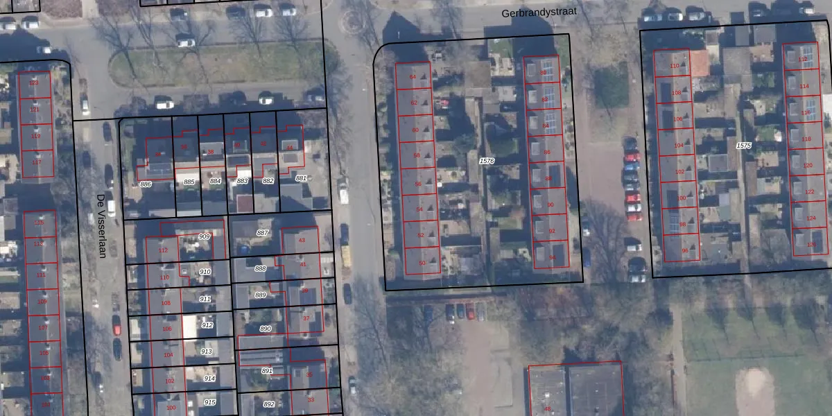 Het perceel waarop Piersonstraat 54 staat heeft een oppervlakte van 2810 m². Dit is een zeer groot perceel. De perceeloppervlakte wordt geregistreerd door het Kadaster. Gedetailleerde informatie over de maten van dit perceel kunt u vinden in het rapport Kadastrale kaart met maatvoering van Piersonstraat 54.