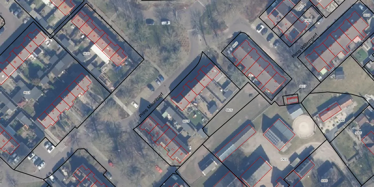 Het perceel waarop Prins Mauritserf 7 staat heeft een oppervlakte van 1560 m². Dit is een zeer groot perceel. De perceeloppervlakte wordt geregistreerd door het Kadaster. Gedetailleerde informatie over de maten van dit perceel kunt u vinden in het rapport Kadastrale kaart met maatvoering van Prins Mauritserf 7.