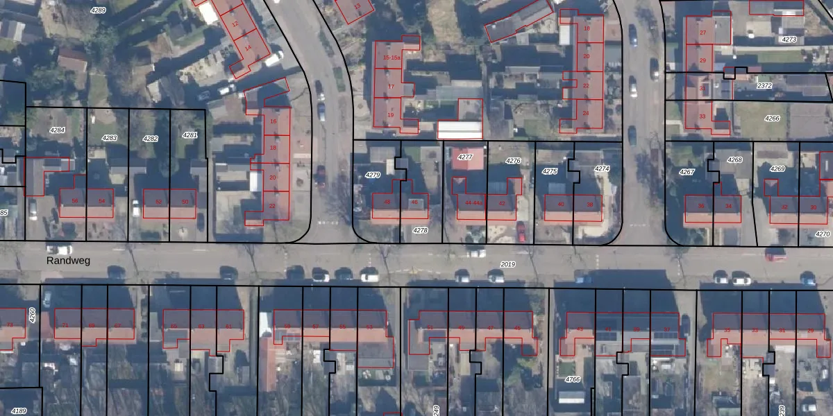 Gebruik de zoekbalk of klik op een perceel voor informatie over de adressen binnen dit perceel.