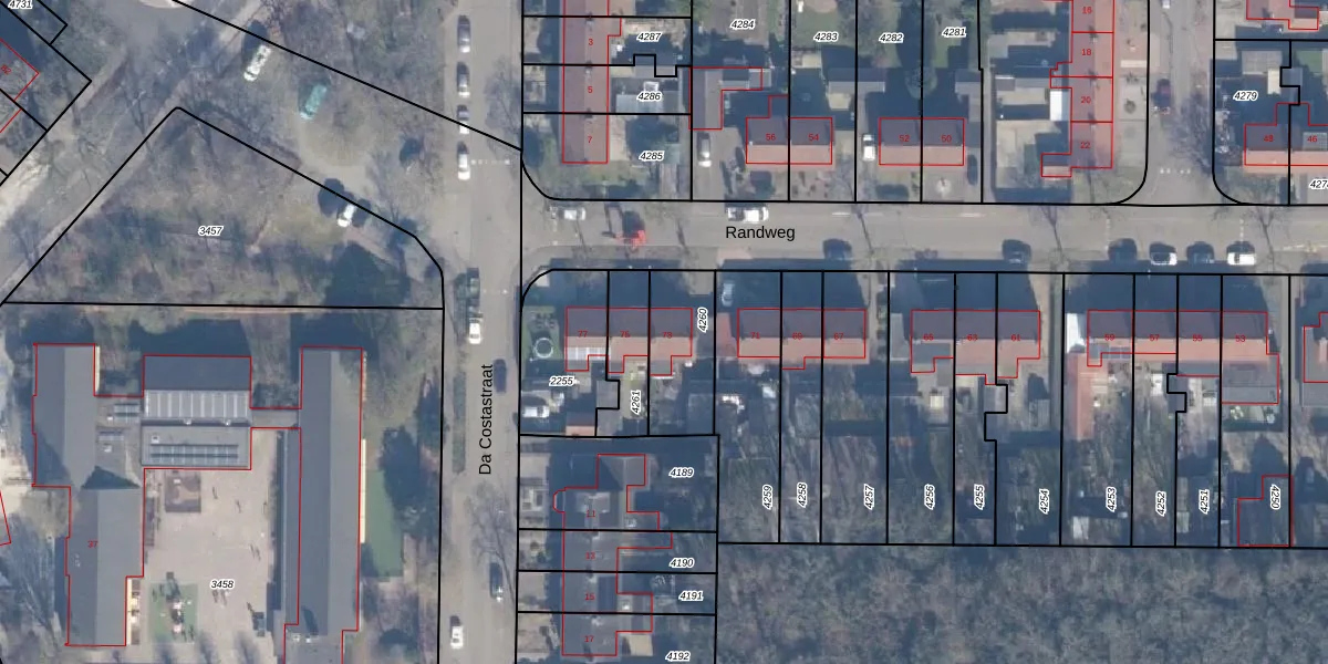 Gebruik de zoekbalk of klik op een perceel voor informatie over de adressen binnen dit perceel.
