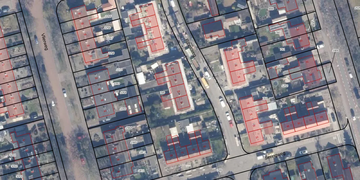 Het perceel waarop Ribesweg 19 staat heeft een oppervlakte van 3400 m². Dit is een zeer groot perceel. De perceeloppervlakte wordt geregistreerd door het Kadaster. Gedetailleerde informatie over de maten van dit perceel kunt u vinden in het rapport Kadastrale kaart met maatvoering van Ribesweg 19.