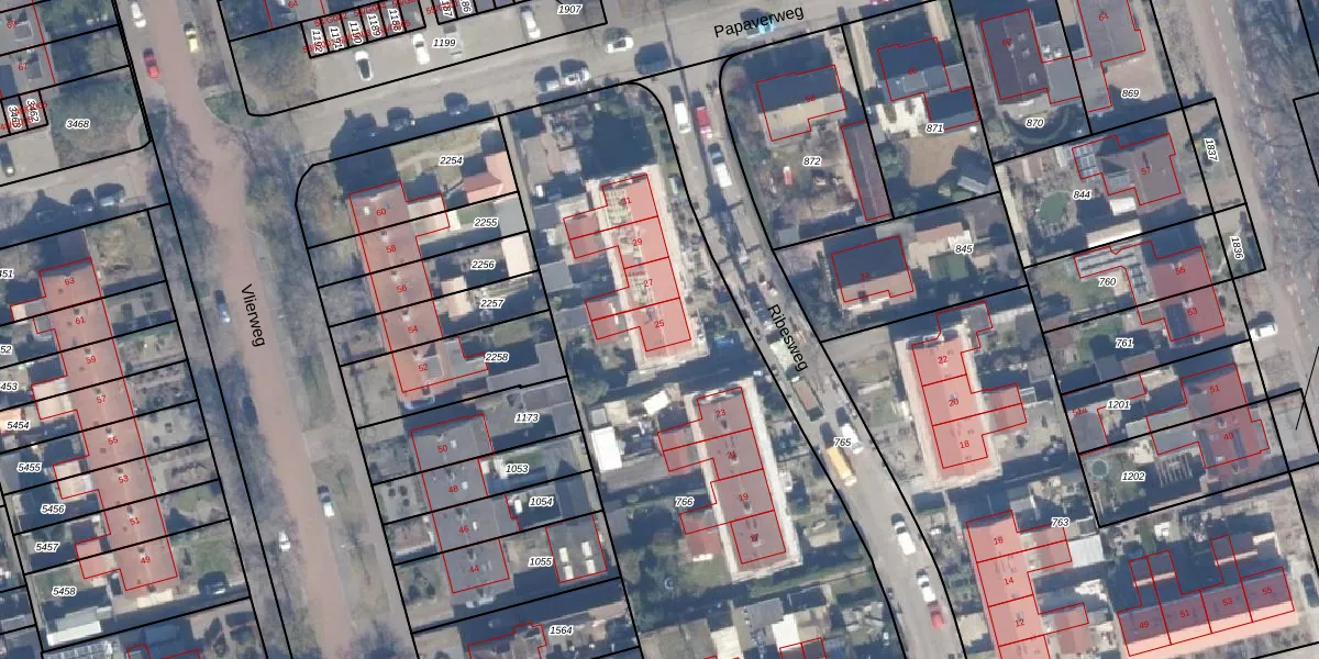 Het perceel waarop Ribesweg 25 staat heeft een oppervlakte van 3400 m². Dit is een zeer groot perceel. De perceeloppervlakte wordt geregistreerd door het Kadaster. Gedetailleerde informatie over de maten van dit perceel kunt u vinden in het rapport Kadastrale kaart met maatvoering van Ribesweg 25.
