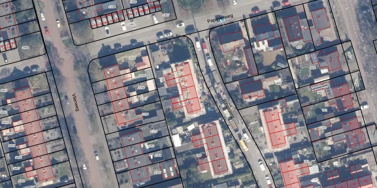 Het perceel waarop Ribesweg 27 staat heeft een oppervlakte van 3400 m². Dit is een zeer groot perceel. De perceeloppervlakte wordt geregistreerd door het Kadaster. Gedetailleerde informatie over de maten van dit perceel kunt u vinden in het rapport Kadastrale kaart met maatvoering van Ribesweg 27.