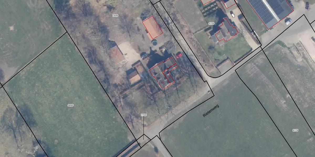 Het perceel waarop Rietenweg 11 staat heeft een oppervlakte van 7770 m². Dit is een zeer groot perceel. De perceeloppervlakte wordt geregistreerd door het Kadaster. Gedetailleerde informatie over de maten van dit perceel kunt u vinden in het rapport Kadastrale kaart met maatvoering van Rietenweg 11.