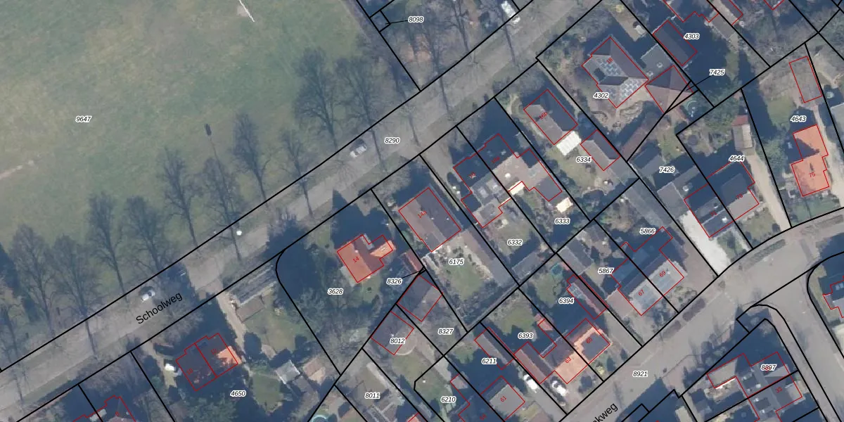 Het perceel waarop Schoolweg 14-a staat heeft een oppervlakte van 605 m². Dit is een groot perceel. De perceeloppervlakte wordt geregistreerd door het Kadaster. Gedetailleerde informatie over de maten van dit perceel kunt u vinden in het rapport Kadastrale kaart met maatvoering van Schoolweg 14-a.