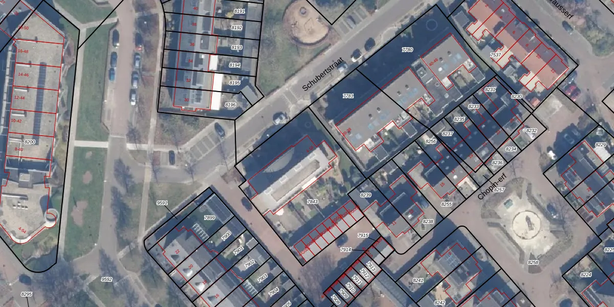 Het perceel waarop Schubertstraat 10 staat heeft een oppervlakte van 1240 m². Dit is een zeer groot perceel. De perceeloppervlakte wordt geregistreerd door het Kadaster. Gedetailleerde informatie over de maten van dit perceel kunt u vinden in het rapport Kadastrale kaart met maatvoering van Schubertstraat 10.