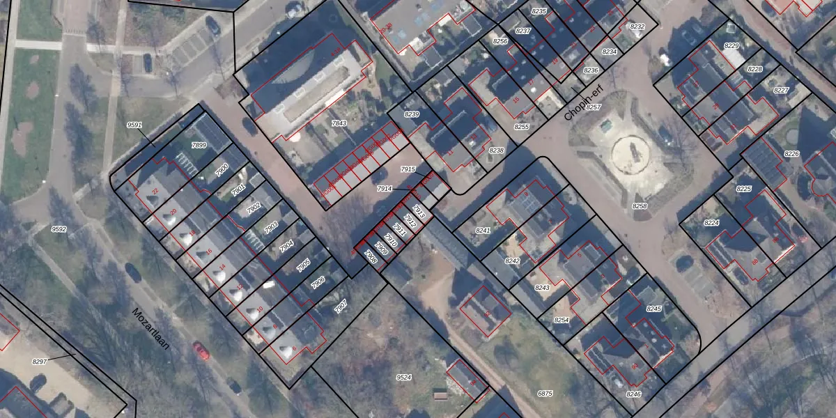 Gebruik de zoekbalk of klik op een perceel voor informatie over de adressen binnen dit perceel.