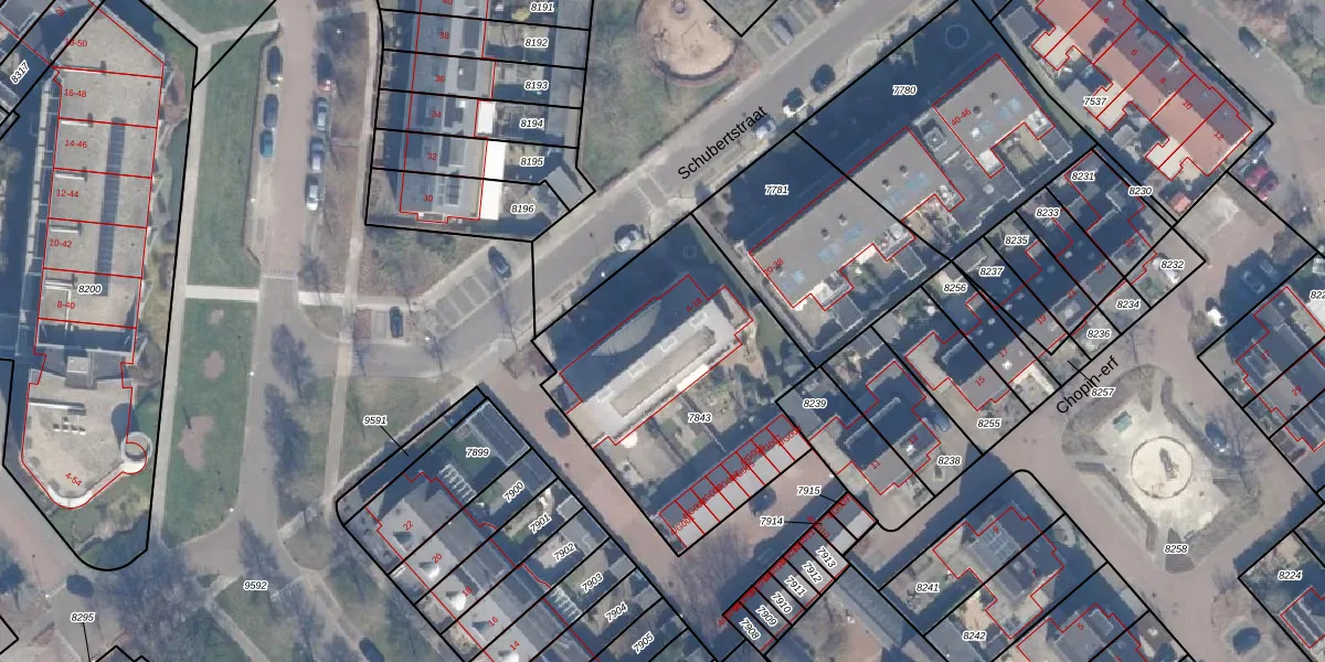 Het perceel waarop Schubertstraat 8 staat heeft een oppervlakte van 1240 m². Dit is een zeer groot perceel. De perceeloppervlakte wordt geregistreerd door het Kadaster. Gedetailleerde informatie over de maten van dit perceel kunt u vinden in het rapport Kadastrale kaart met maatvoering van Schubertstraat 8.