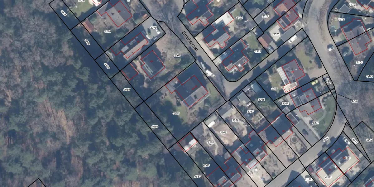 Het perceel waarop Smithstraat 54 staat heeft een oppervlakte van 950 m². Dit is een groot perceel. De perceeloppervlakte wordt geregistreerd door het Kadaster. Gedetailleerde informatie over de maten van dit perceel kunt u vinden in het rapport Kadastrale kaart met maatvoering van Smithstraat 54.