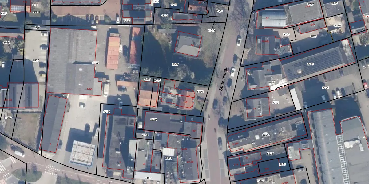 Het perceel waarop Stationslaan 56 staat heeft een oppervlakte van 445 m². Dit is een groot perceel. De perceeloppervlakte wordt geregistreerd door het Kadaster. Gedetailleerde informatie over de maten van dit perceel kunt u vinden in het rapport Kadastrale kaart met maatvoering van Stationslaan 56.