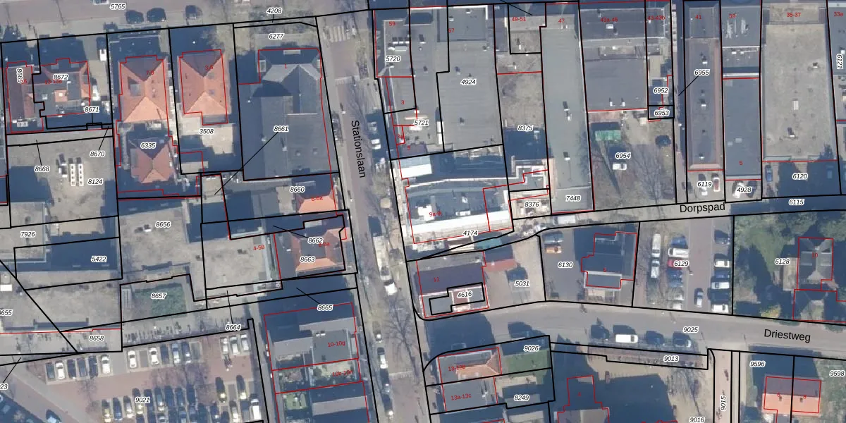 Het perceel waarop Stationslaan 9-j staat heeft een oppervlakte van 595 m². Dit is een groot perceel. De perceeloppervlakte wordt geregistreerd door het Kadaster. Gedetailleerde informatie over de maten van dit perceel kunt u vinden in het rapport Kadastrale kaart met maatvoering van Stationslaan 9-j.