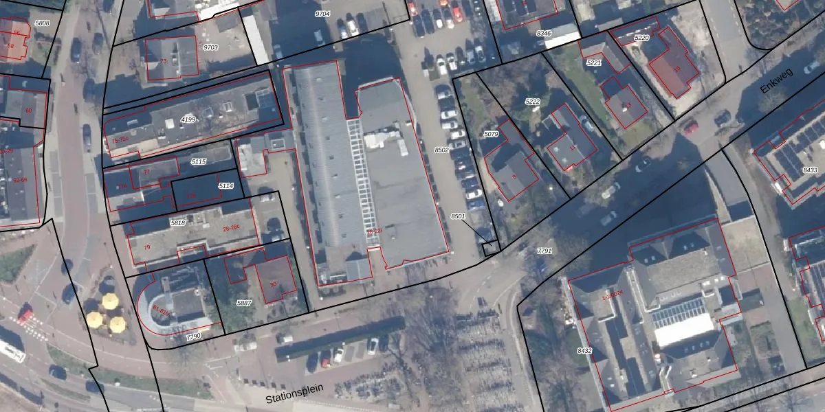 Het perceel waarop Stationsplein 18-b staat heeft een oppervlakte van 3540 m². Dit is een zeer groot perceel. De perceeloppervlakte wordt geregistreerd door het Kadaster. Gedetailleerde informatie over de maten van dit perceel kunt u vinden in het rapport Kadastrale kaart met maatvoering van Stationsplein 18-b.