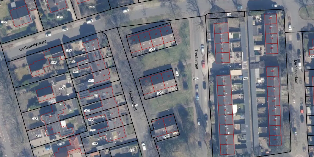 Het perceel waarop Talmastraat 8 staat heeft een oppervlakte van 312 m². Dit is een groot perceel. De perceeloppervlakte wordt geregistreerd door het Kadaster. Gedetailleerde informatie over de maten van dit perceel kunt u vinden in het rapport Kadastrale kaart met maatvoering van Talmastraat 8.