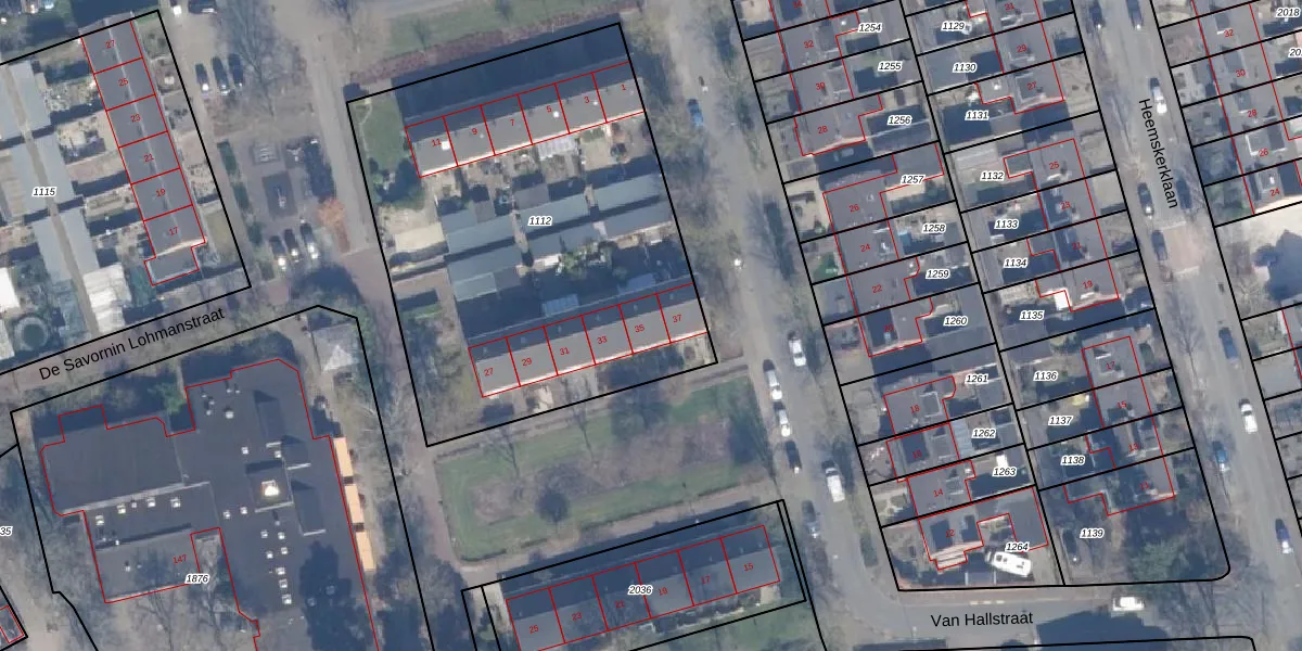 Het perceel waarop Van Hallstraat 35 staat heeft een oppervlakte van 2442 m². Dit is een zeer groot perceel. De perceeloppervlakte wordt geregistreerd door het Kadaster. Gedetailleerde informatie over de maten van dit perceel kunt u vinden in het rapport Kadastrale kaart met maatvoering van Van Hallstraat 35.