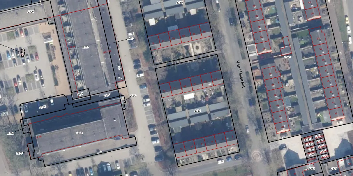 Het perceel waarop Van Hallstraat 71 staat heeft een oppervlakte van 2056 m². Dit is een zeer groot perceel. De perceeloppervlakte wordt geregistreerd door het Kadaster. Gedetailleerde informatie over de maten van dit perceel kunt u vinden in het rapport Kadastrale kaart met maatvoering van Van Hallstraat 71.