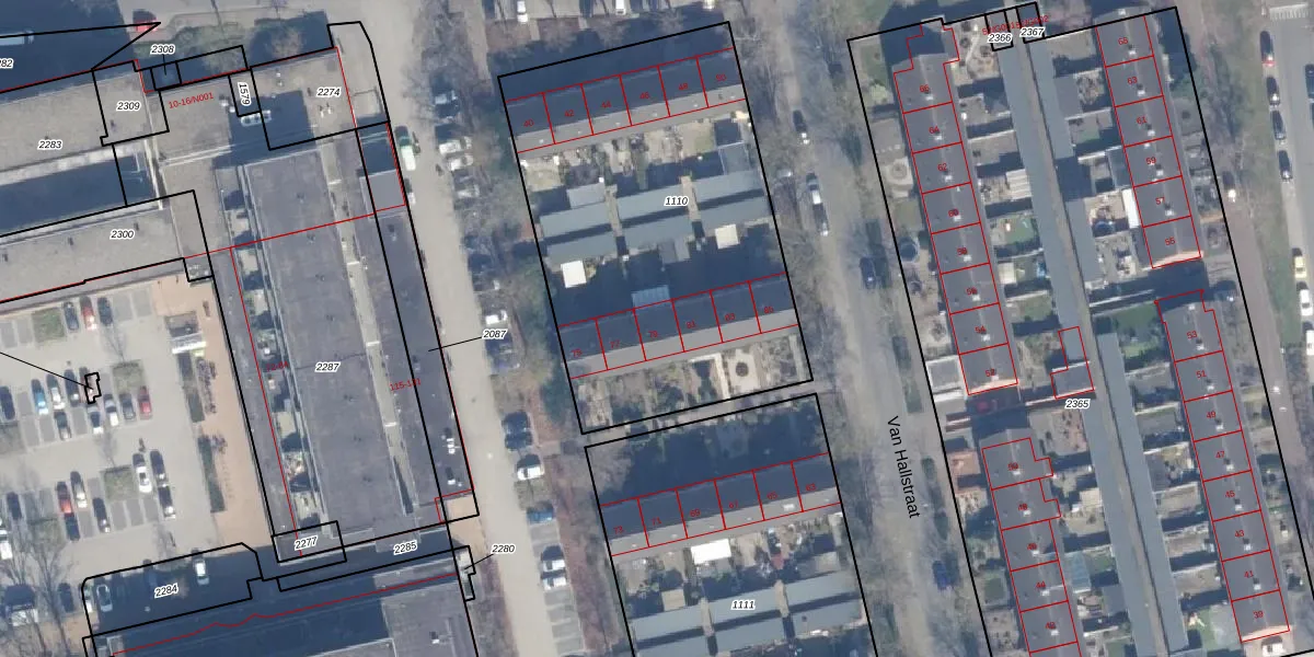 Het perceel waarop Van Hallstraat 79 staat heeft een oppervlakte van 2017 m². Dit is een zeer groot perceel. De perceeloppervlakte wordt geregistreerd door het Kadaster. Gedetailleerde informatie over de maten van dit perceel kunt u vinden in het rapport Kadastrale kaart met maatvoering van Van Hallstraat 79.