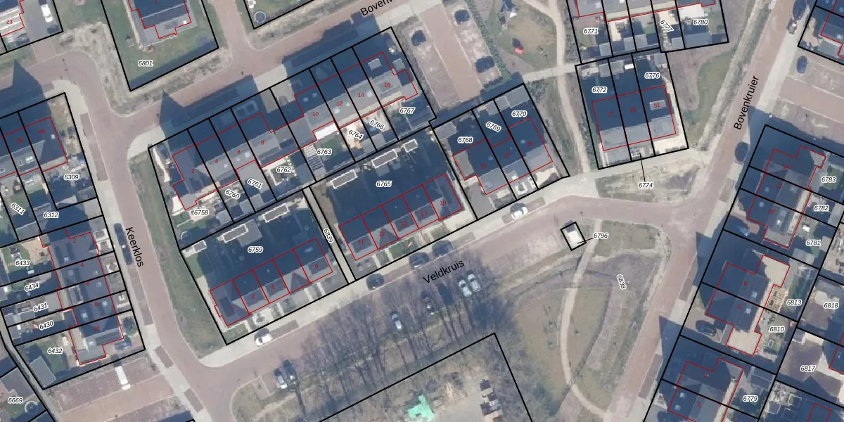 Het perceel waarop Veldkruis 17 staat heeft een oppervlakte van 807 m². Dit is een groot perceel. De perceeloppervlakte wordt geregistreerd door het Kadaster. Gedetailleerde informatie over de maten van dit perceel kunt u vinden in het rapport Kadastrale kaart met maatvoering van Veldkruis 17.