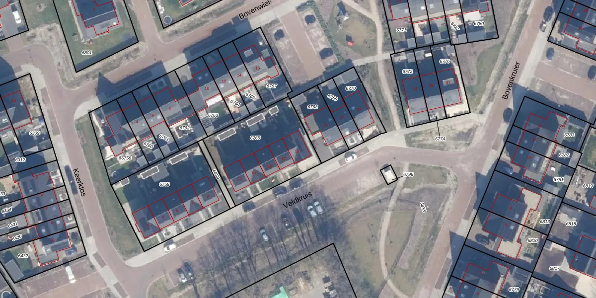 Het perceel waarop Veldkruis 19 staat heeft een oppervlakte van 807 m². Dit is een groot perceel. De perceeloppervlakte wordt geregistreerd door het Kadaster. Gedetailleerde informatie over de maten van dit perceel kunt u vinden in het rapport Kadastrale kaart met maatvoering van Veldkruis 19.