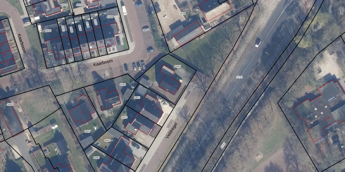 Het perceel waarop Veldregel 9 staat heeft een oppervlakte van 556 m². Dit is een groot perceel. De perceeloppervlakte wordt geregistreerd door het Kadaster. Gedetailleerde informatie over de maten van dit perceel kunt u vinden in het rapport Kadastrale kaart met maatvoering van Veldregel 9.
