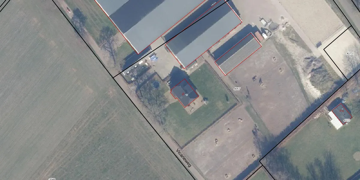Het perceel waarop Vicarieweg 22 staat heeft een oppervlakte van 9580 m². Dit is een zeer groot perceel. De perceeloppervlakte wordt geregistreerd door het Kadaster. Gedetailleerde informatie over de maten van dit perceel kunt u vinden in het rapport Kadastrale kaart met maatvoering van Vicarieweg 22.