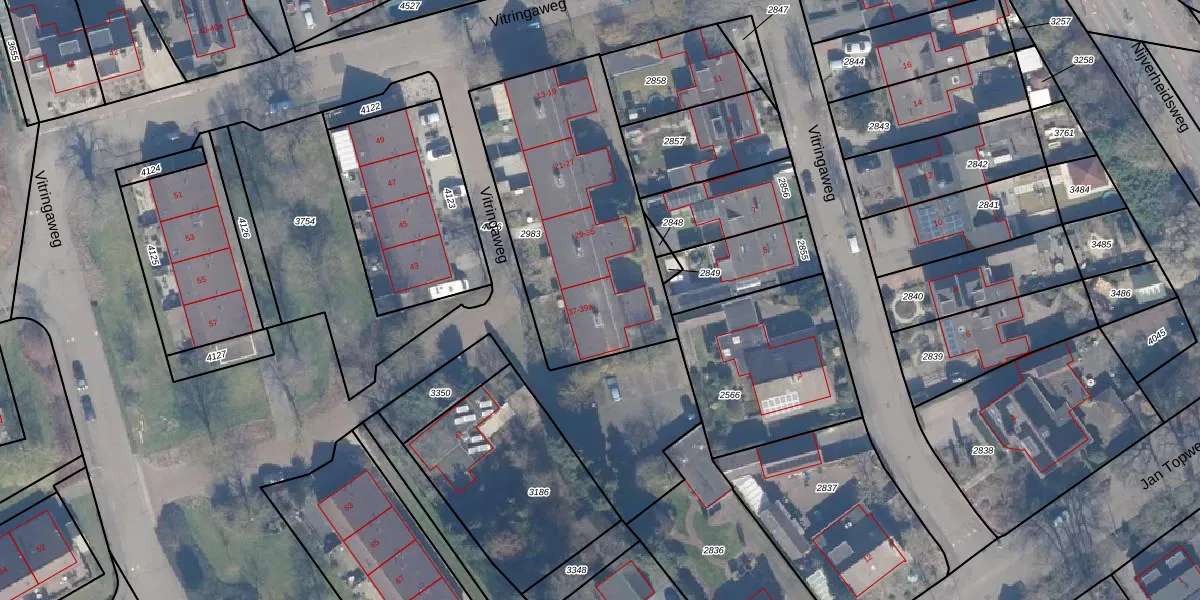 Vitringaweg 37-a is gelegen op kadastraal perceel NST01I2983. Deze kadastrale aanduiding is uniek en wordt gebruikt door het Kadaster om eigendomsrechten en andere zakelijke rechten vast te leggen. Het perceel maakt onderdeel uit van de kadastrale gemeente Nunspeet.
