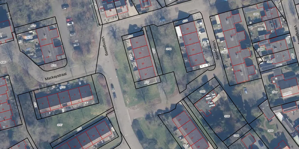 Vitringaweg 57 is gelegen op kadastraal perceel NST01I4125. Deze kadastrale aanduiding is uniek en wordt gebruikt door het Kadaster om eigendomsrechten en andere zakelijke rechten vast te leggen. Het perceel maakt onderdeel uit van de kadastrale gemeente Nunspeet.