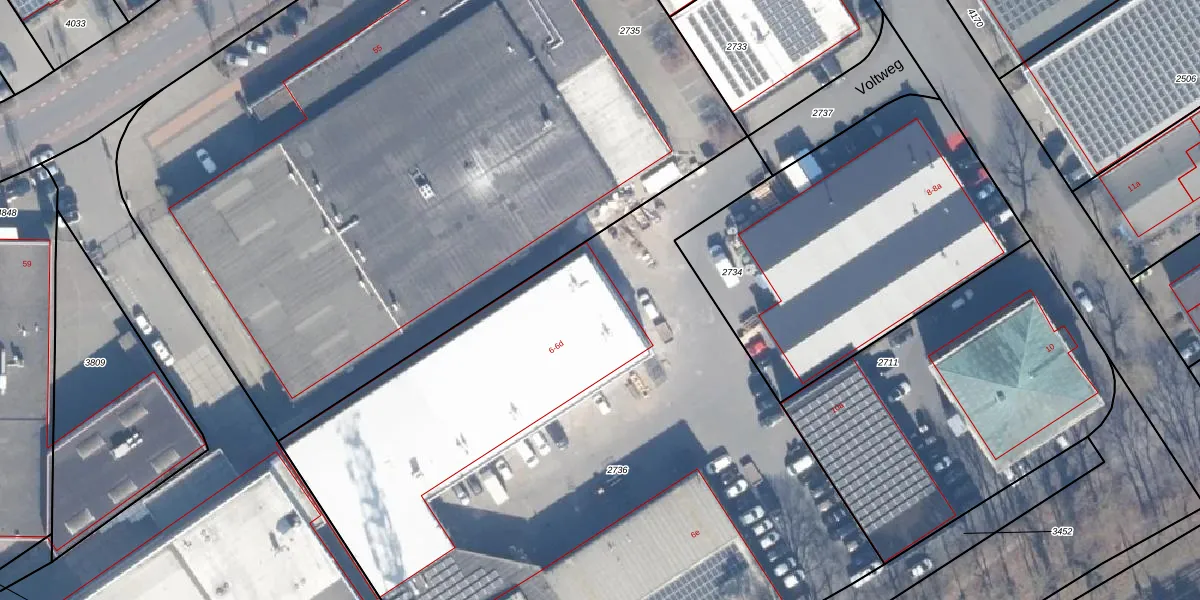 Het perceel waarop Voltweg 6 staat heeft een oppervlakte van 5415 m². Dit is een zeer groot perceel. De perceeloppervlakte wordt geregistreerd door het Kadaster. Gedetailleerde informatie over de maten van dit perceel kunt u vinden in het rapport Kadastrale kaart met maatvoering van Voltweg 6.