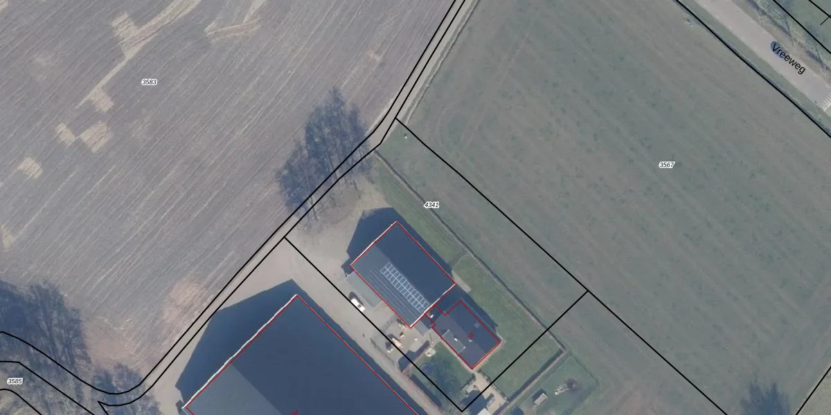 Vreeweg 55-b is gelegen op kadastraal perceel NST01I4341. Deze kadastrale aanduiding is uniek en wordt gebruikt door het Kadaster om eigendomsrechten en andere zakelijke rechten vast te leggen. Het perceel maakt onderdeel uit van de kadastrale gemeente Nunspeet.