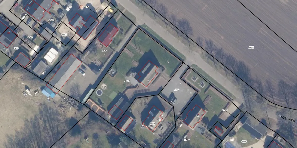 Vreeweg 7 is gelegen op kadastraal perceel NST01I4447. Deze kadastrale aanduiding is uniek en wordt gebruikt door het Kadaster om eigendomsrechten en andere zakelijke rechten vast te leggen. Het perceel maakt onderdeel uit van de kadastrale gemeente Nunspeet.