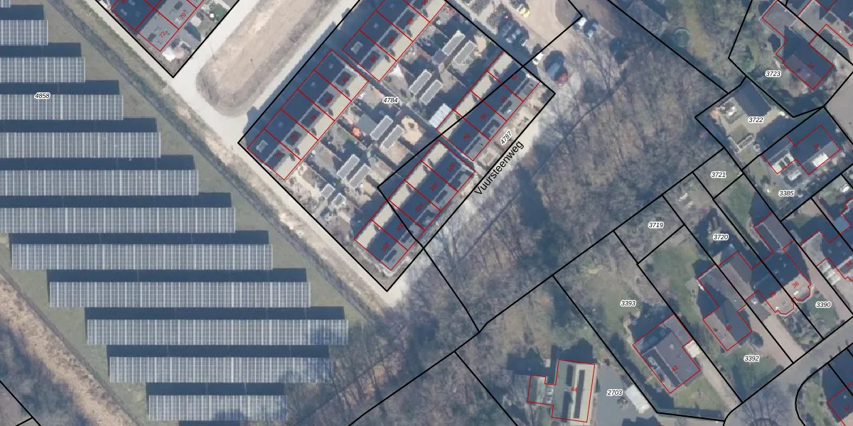 Het perceel waarop Vuursteenweg 104 staat heeft een oppervlakte van 635 m². Dit is een groot perceel. De perceeloppervlakte wordt geregistreerd door het Kadaster. Gedetailleerde informatie over de maten van dit perceel kunt u vinden in het rapport Kadastrale kaart met maatvoering van Vuursteenweg 104.