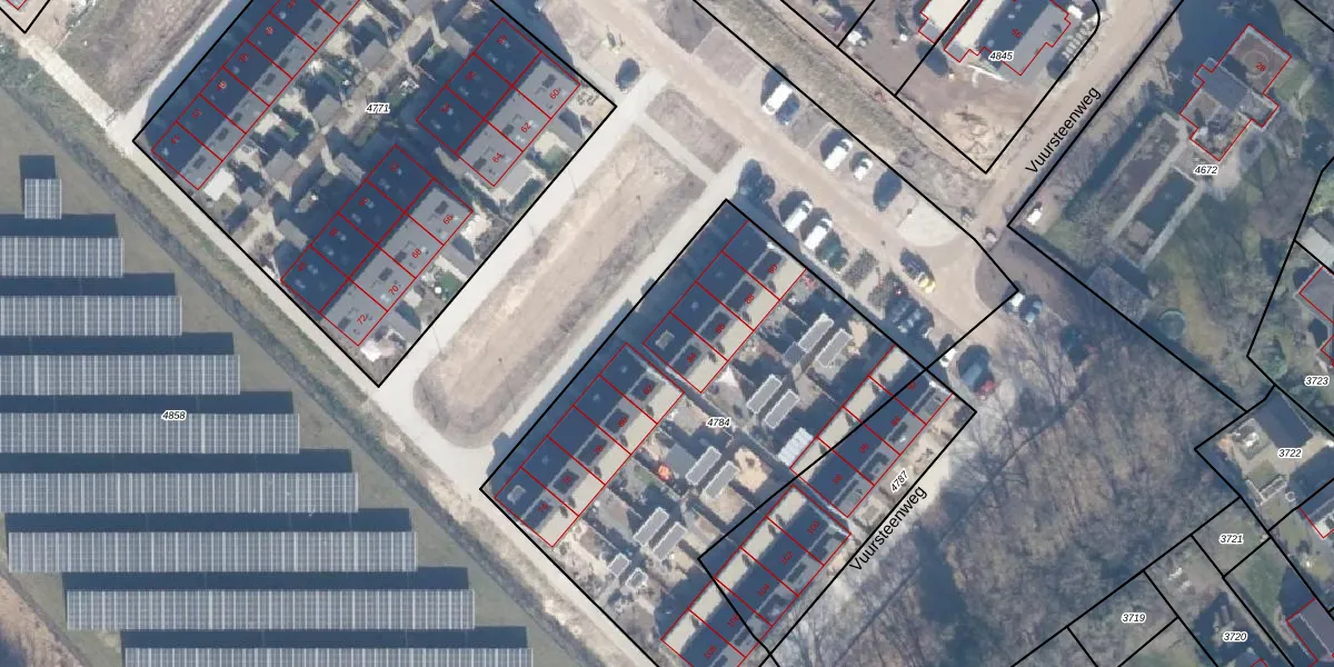Het perceel waarop Vuursteenweg 84 staat heeft een oppervlakte van 2265 m². Dit is een zeer groot perceel. De perceeloppervlakte wordt geregistreerd door het Kadaster. Gedetailleerde informatie over de maten van dit perceel kunt u vinden in het rapport Kadastrale kaart met maatvoering van Vuursteenweg 84.