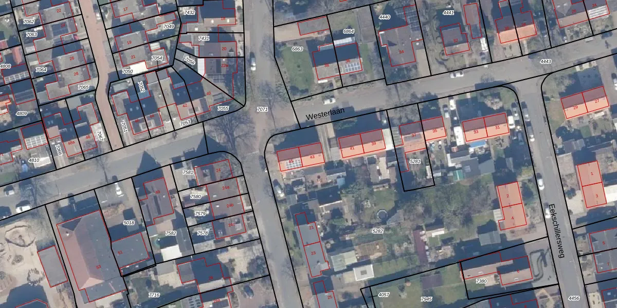 Het perceel waarop Westerlaan 43 staat heeft een oppervlakte van 5147 m². Dit is een zeer groot perceel. De perceeloppervlakte wordt geregistreerd door het Kadaster. Gedetailleerde informatie over de maten van dit perceel kunt u vinden in het rapport Kadastrale kaart met maatvoering van Westerlaan 43.