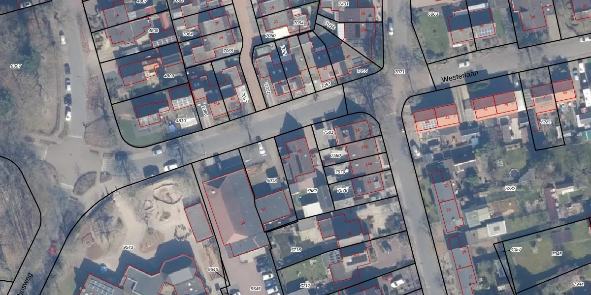 Het perceel waarop Westerlaan 49 staat heeft een oppervlakte van 395 m². Dit is een groot perceel. De perceeloppervlakte wordt geregistreerd door het Kadaster. Gedetailleerde informatie over de maten van dit perceel kunt u vinden in het rapport Kadastrale kaart met maatvoering van Westerlaan 49.