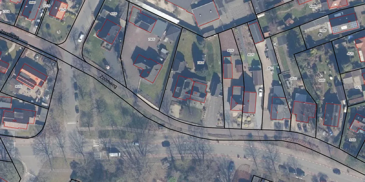 Het perceel waarop Zoomweg 14 staat heeft een oppervlakte van 1415 m². Dit is een zeer groot perceel. De perceeloppervlakte wordt geregistreerd door het Kadaster. Gedetailleerde informatie over de maten van dit perceel kunt u vinden in het rapport Kadastrale kaart met maatvoering van Zoomweg 14.